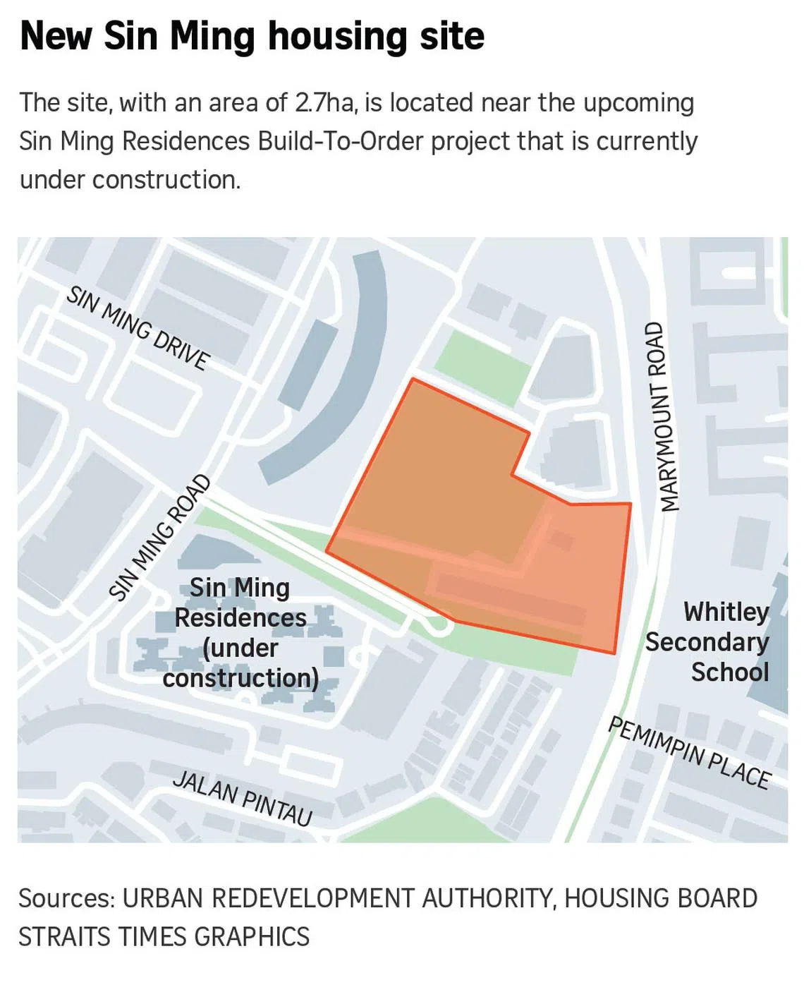 The new housing plot is located just metres from the Sin Ming Residences Build-To-Order project by the Housing Board that was launched in December 2023.