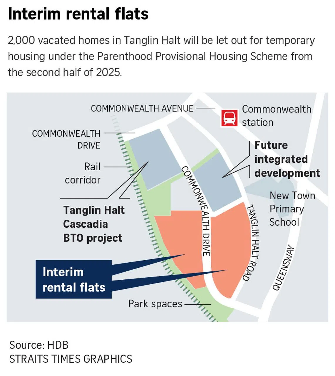 These homes, located among the 31 blocks in Tanglin Halt that were selected for redevelopment in 2014, will be spruced up and let out for temporary housing under the Parenthood Provisional Housing Scheme (PPHS) from the second half of 2025, the Housing Board said on Feb 5.