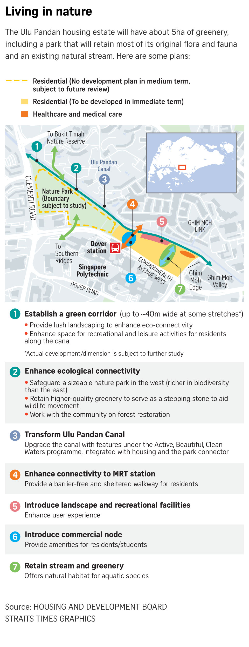 The Ulu Pandan housing estate will have about 5ha of greenery, including a 1.2ha park that will retain most of its original flora and fauna and an existing natural stream.