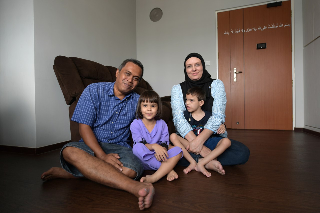 Mr Mohd Aszrin with his wife Tasha Ahrens and their children Dean Joaquin and Sara Elizabeth. Mr Aszrin was one of the 3,000 rental flat tenants who bought their homes in the last five years.
