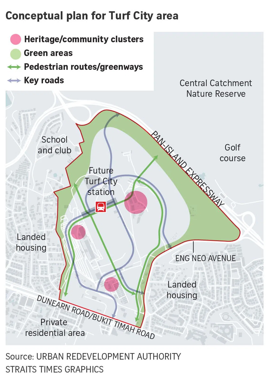 At Turf City, which has been earmarked for residential development since 1998, URA said it is looking into the prospect of providing public and private housing as well as amenities to cater to a range of preferences and budgets.