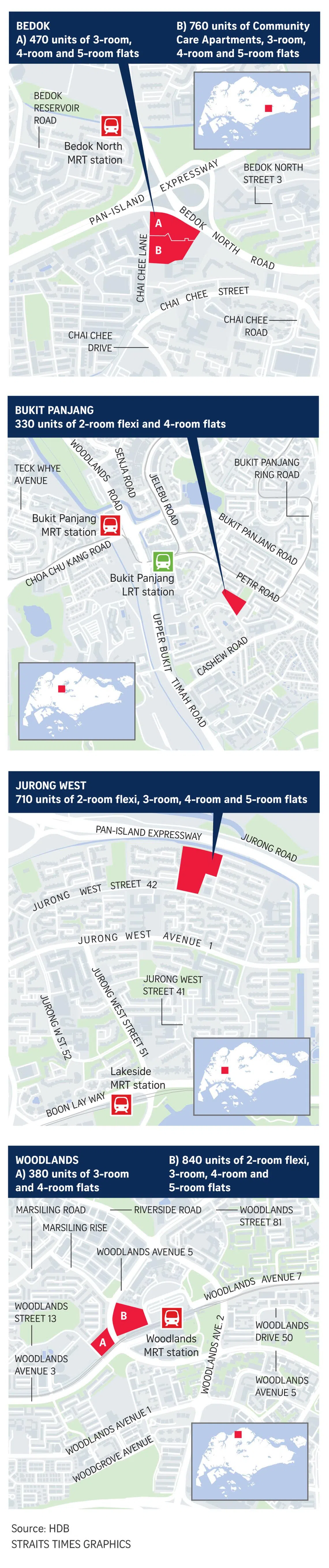 The Bukit Panjang project will be the smallest in this exercise, with 330 two-room flexi and four-room flats. It will be built in Petir Road and Cashew Road.