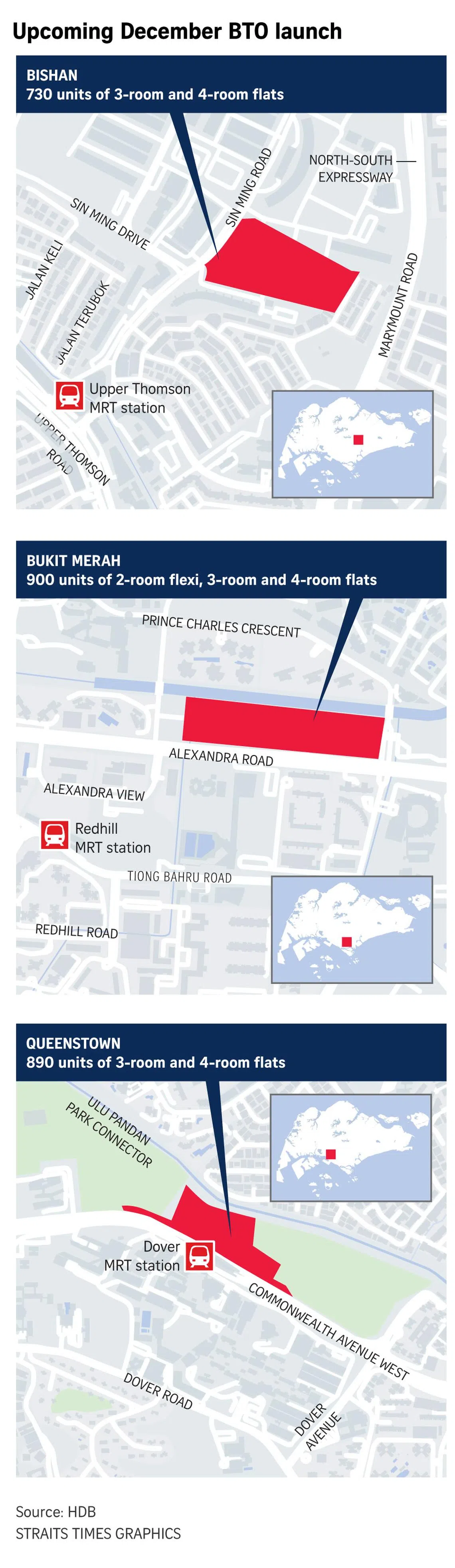 The Housing Board on Wednesday released details on its website of eight projects that will be launched in its final sales exercise of 2023. It will offer about 6,000 flats in Bedok, Bishan, Bukit Merah, Bukit Panjang, Jurong West, Queenstown and Woodlands in December.