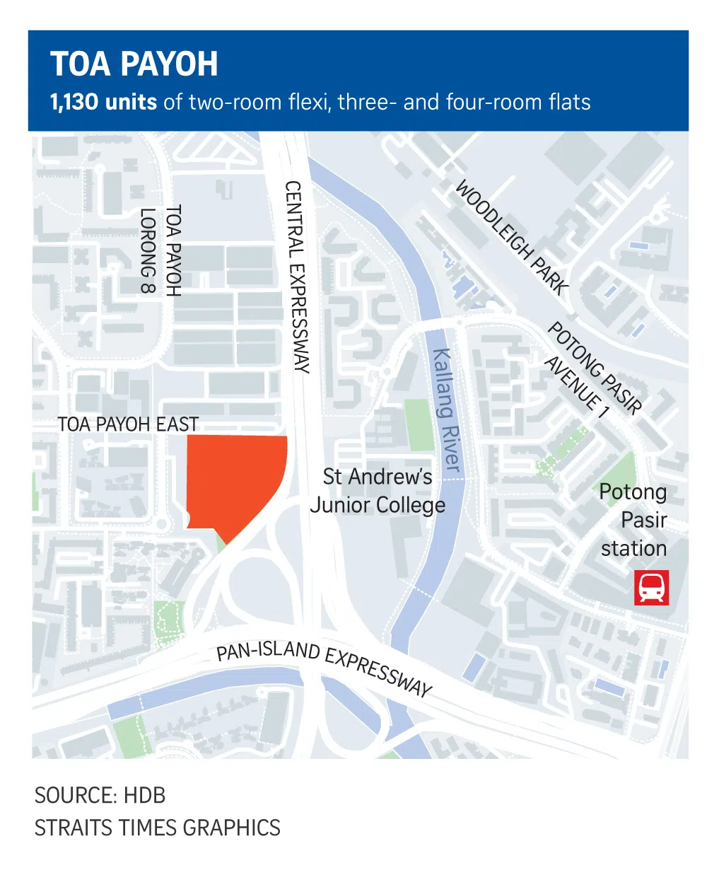 In Toa Payoh, a 1,130-unit project comprising two-room flexi, three- and four-room flats will be built in Kim Keat Avenue near the CTE.
