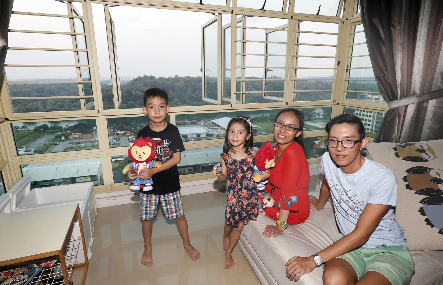 Mr Brian Chee, 41, his wife Catherine Low, 38, their daughter Heidi, five, and son Reygan, eight, live in a top-floor four-room flat in Punggol East. They are happy there and have no intention to sell despite attractive resale prices.