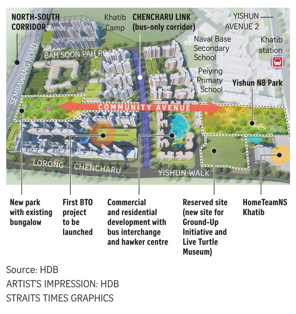 By 2040, about 10,000 homes will be built on the 70ha site bounded by Yishun Avenues 1 and 2 and Sembawang Road.