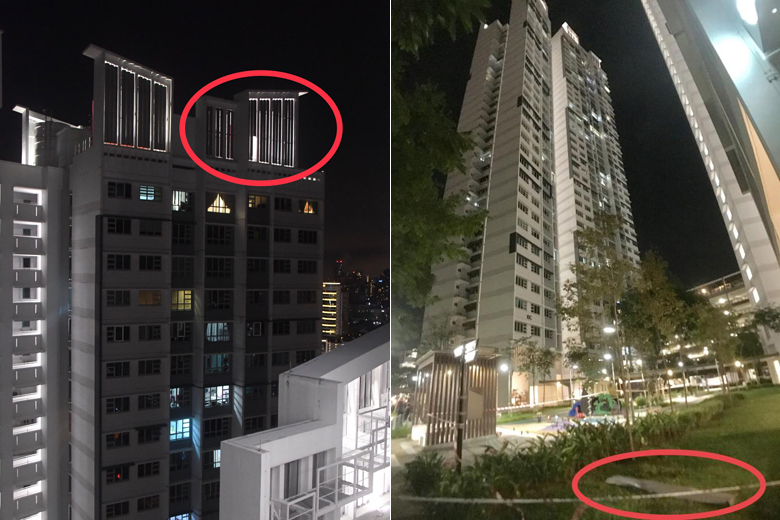 She had initially dismissed it as sounds from a nearby construction site, but a neighbour later sent her a photo of a decorative panel that had fallen 40 storeys down their block onto a grass patch next to the playground.