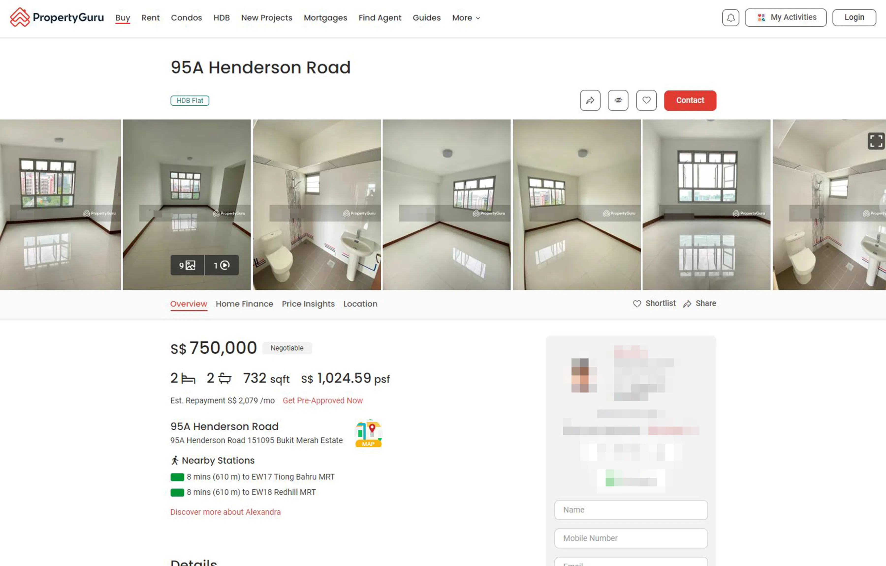 A three-room HDB flat at 95A Henderson Road has an asking price of $750,000.