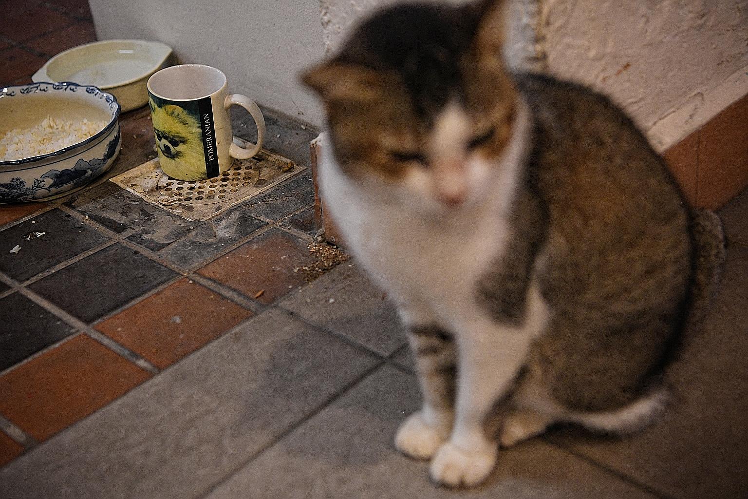 Mei Mei, the resident cat of Block 317, which has been living in the estate for almost 15 years. Cat lovers in the neighbourhood worry about its fate when the estate is demolished next month.