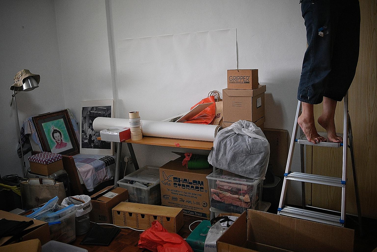 Freelance photographer Law Kian Yan, who has been living in Shunfu Ville since she was nine, packing her study last Friday. Ms Law and her father were the last family on their floor to move out.