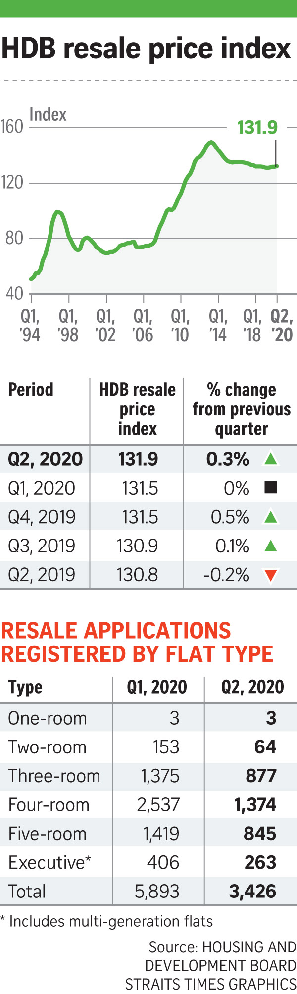 The number of resale transactions fell by 41.9 per cent, from 5,893 flats sold in the first quarter to 3,426 flats in the second, according to data from the HDB yesterday.