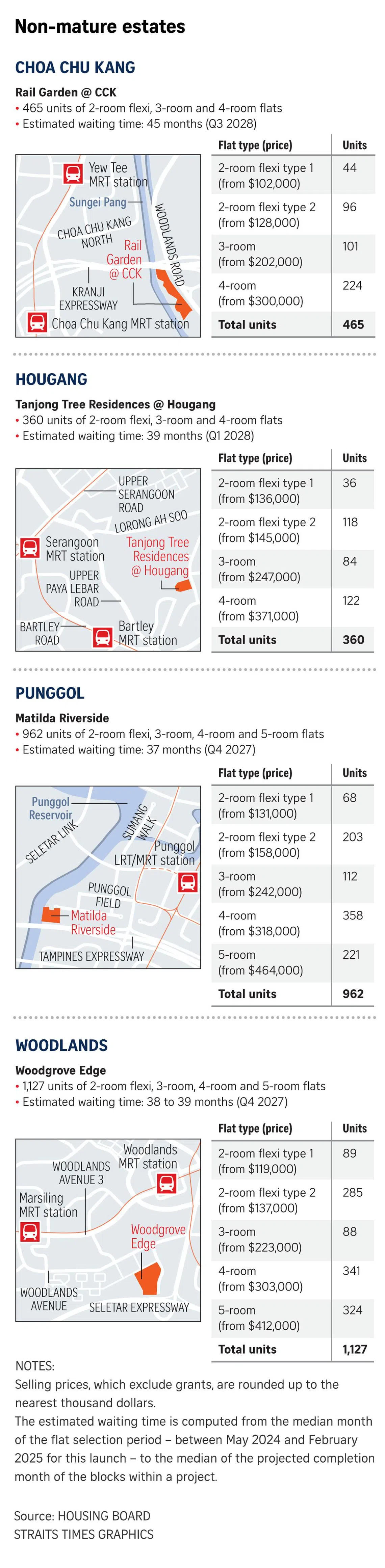 Five projects, or more than 80 per cent of the flats launched, will have waiting times shorter than 3½ years, HDB said.