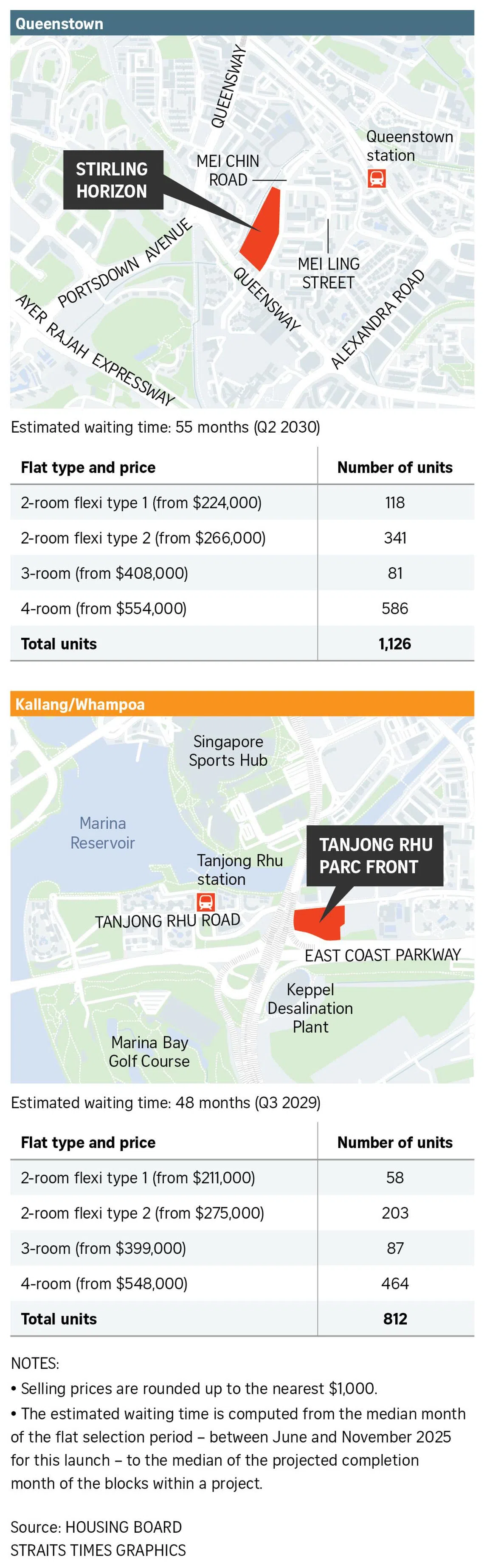 Ms Christine Sun, chief researcher and strategist at property firm OrangeTee Group, said single applicants could be drawn to Stirling Horizon as there are more than 450 two-room flexi flats on offer.