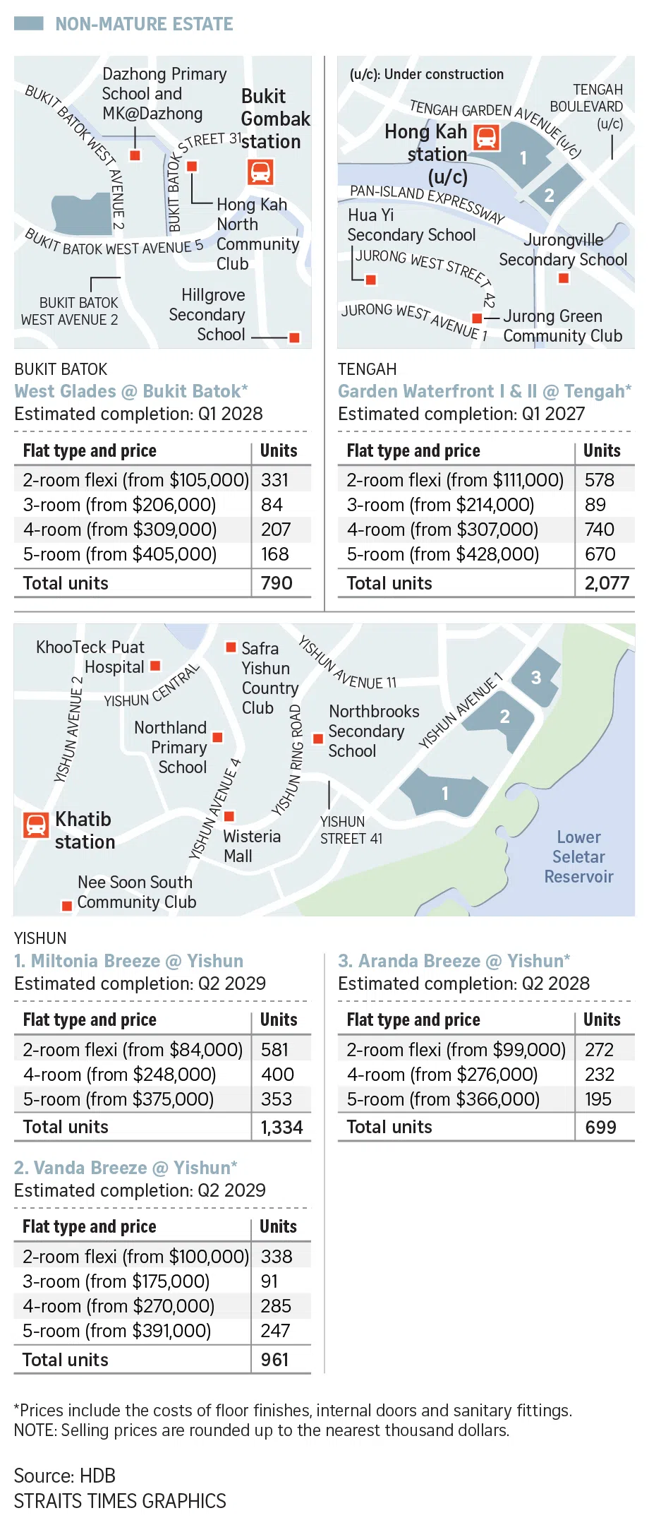 All four-room flats offered in these non-mature estates are below $400,000, said HDB.