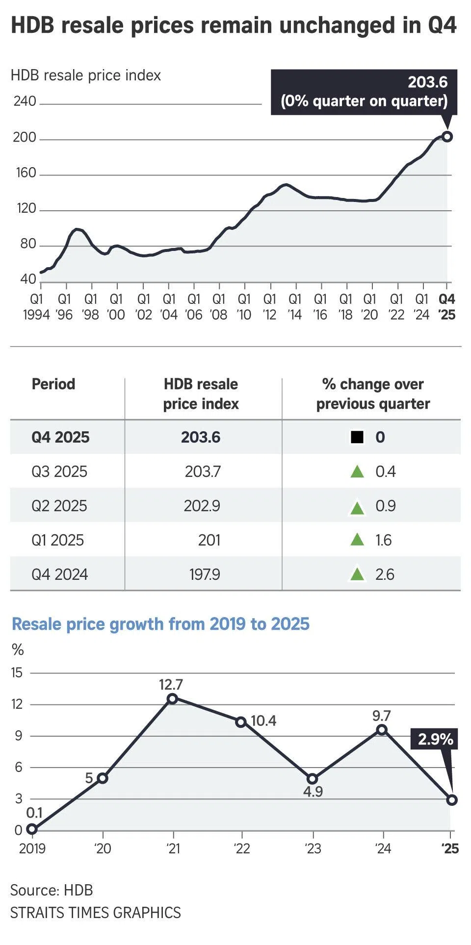 In the last three months of 2025, HDB resale prices remained unchanged for the first time since the first quarter of 2020.