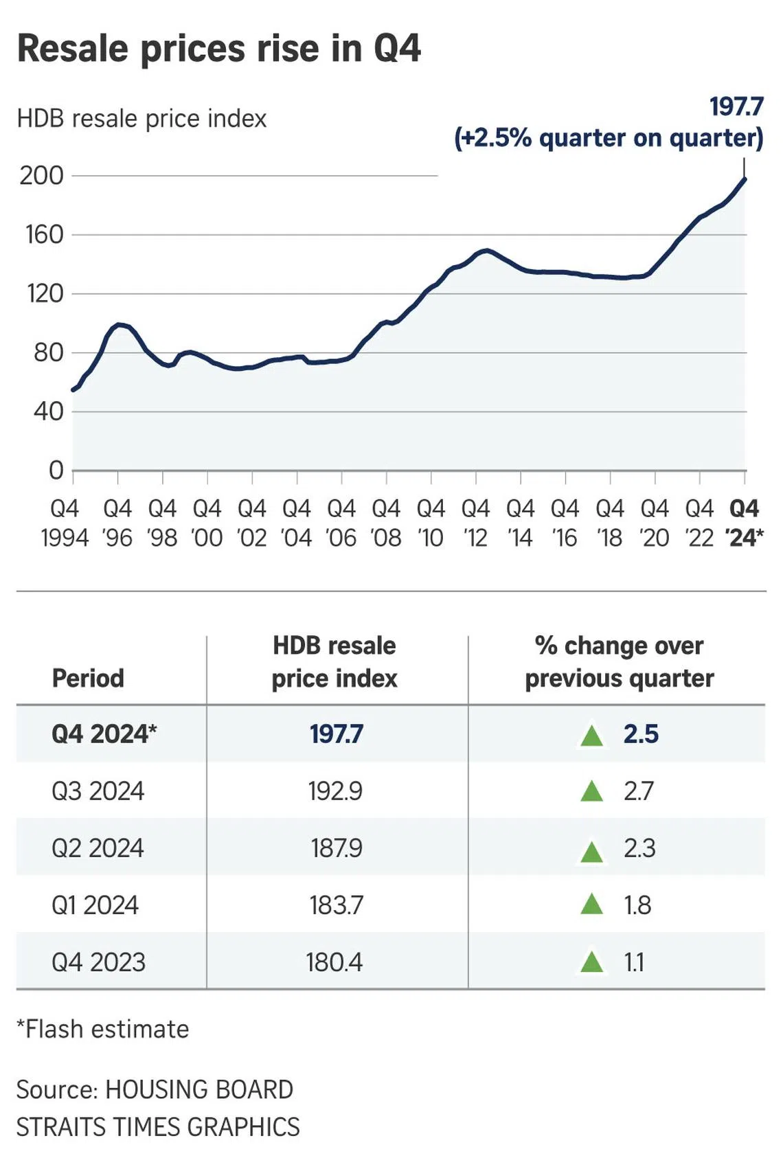 HDB resale prices rose 9.6% in 2024, with price growth slowing in Q4