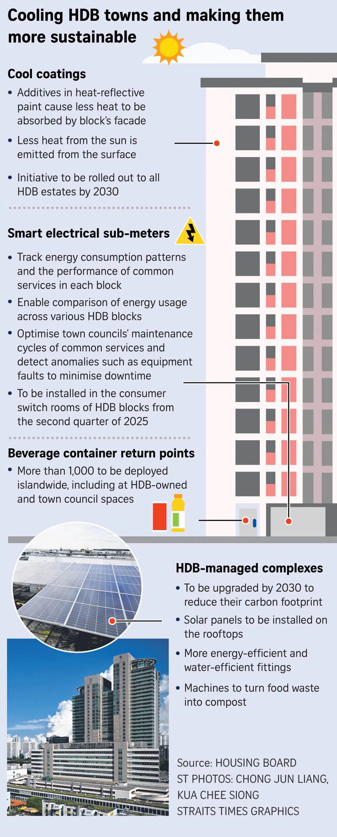 The scheme to coat HDB blocks with heat-reflective paint will be offered to all town councils over the next five years, with the Government paying the extra costs from using the cool coatings.