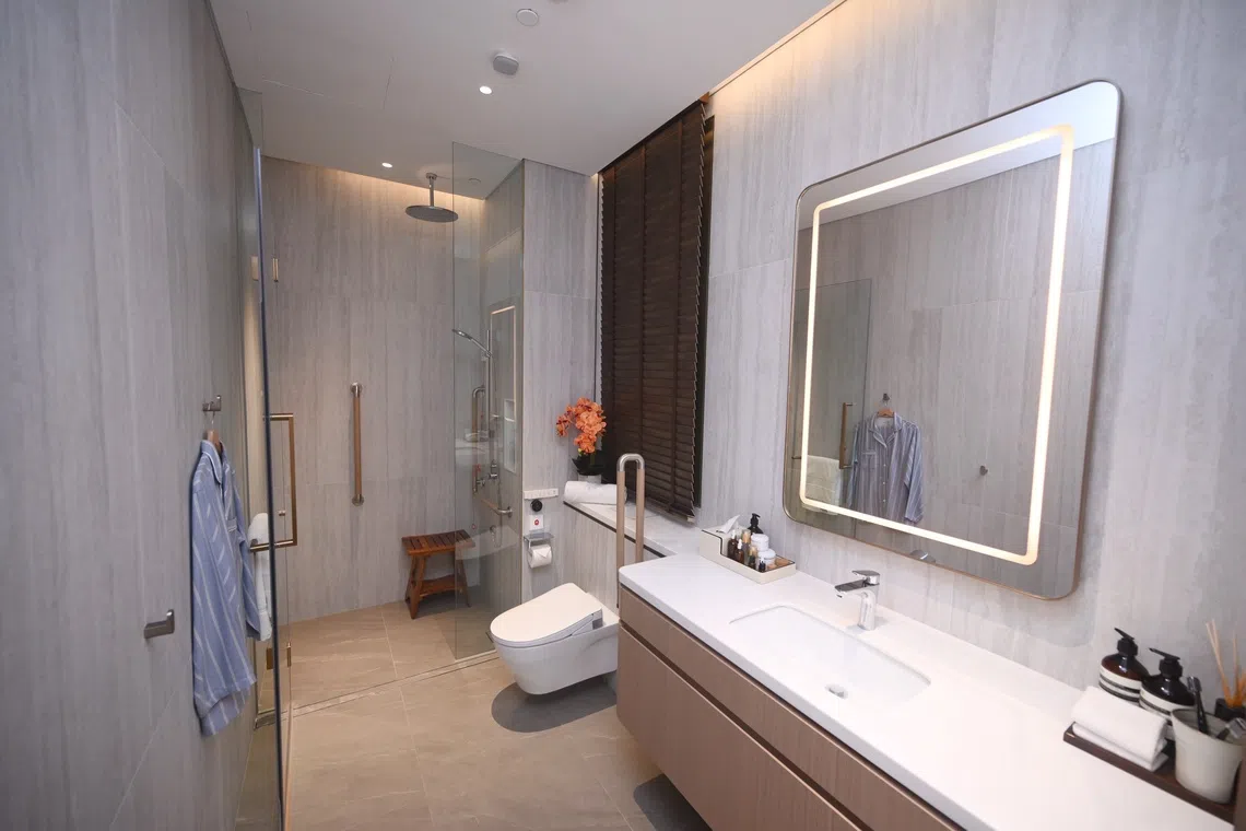 The toilet for a one-bedroom Type B6 room at Perennial Living comes with senior-friendly amenities.