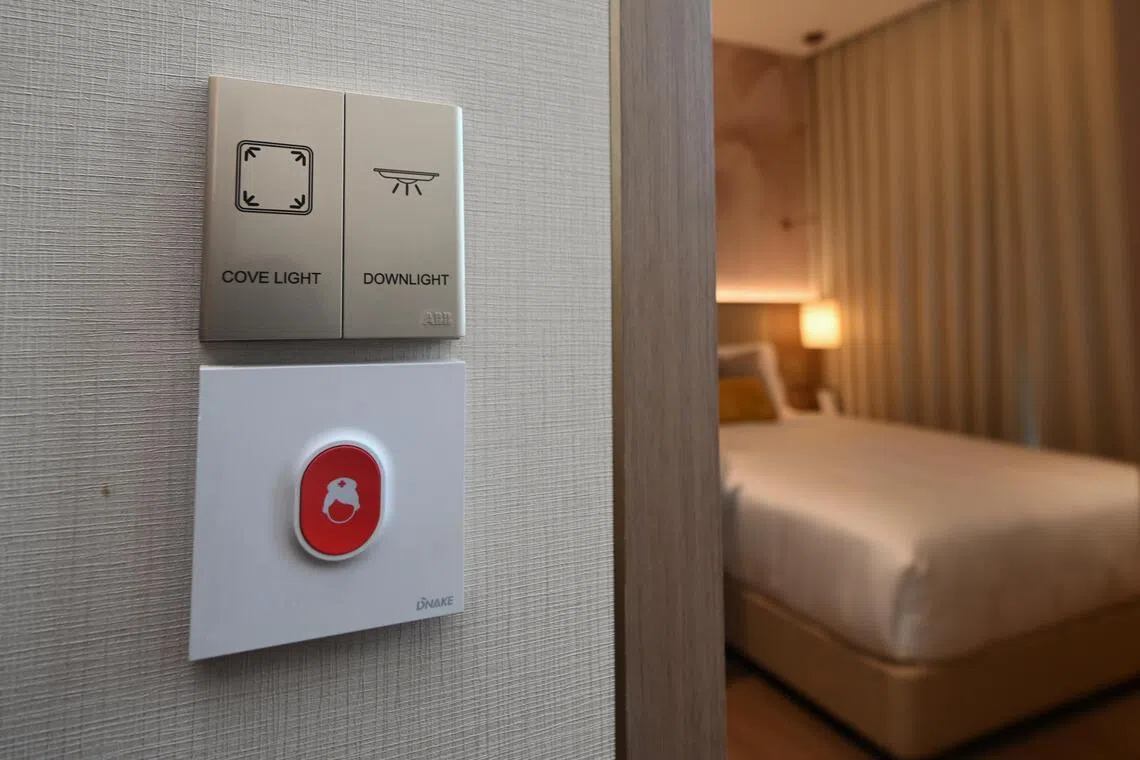An emergency call button inside a one-bedroom Type B6 room at Perennial Living