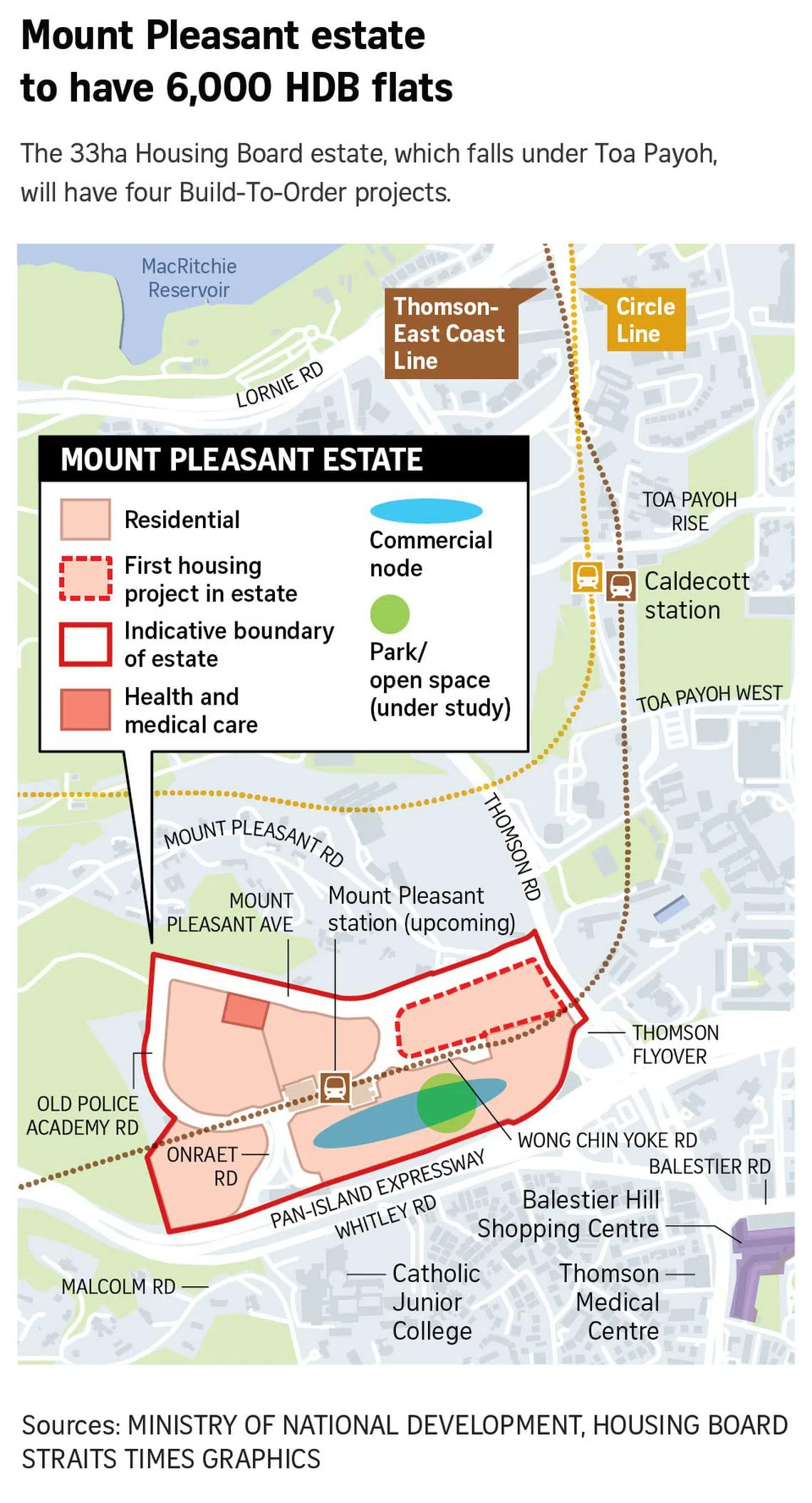 SINGAPORE - About 6,000 Housing Board flats across four Build-To-Order (BTO) projects will be constructed in Mount Pleasant – up from the 5,000 units previously announced.