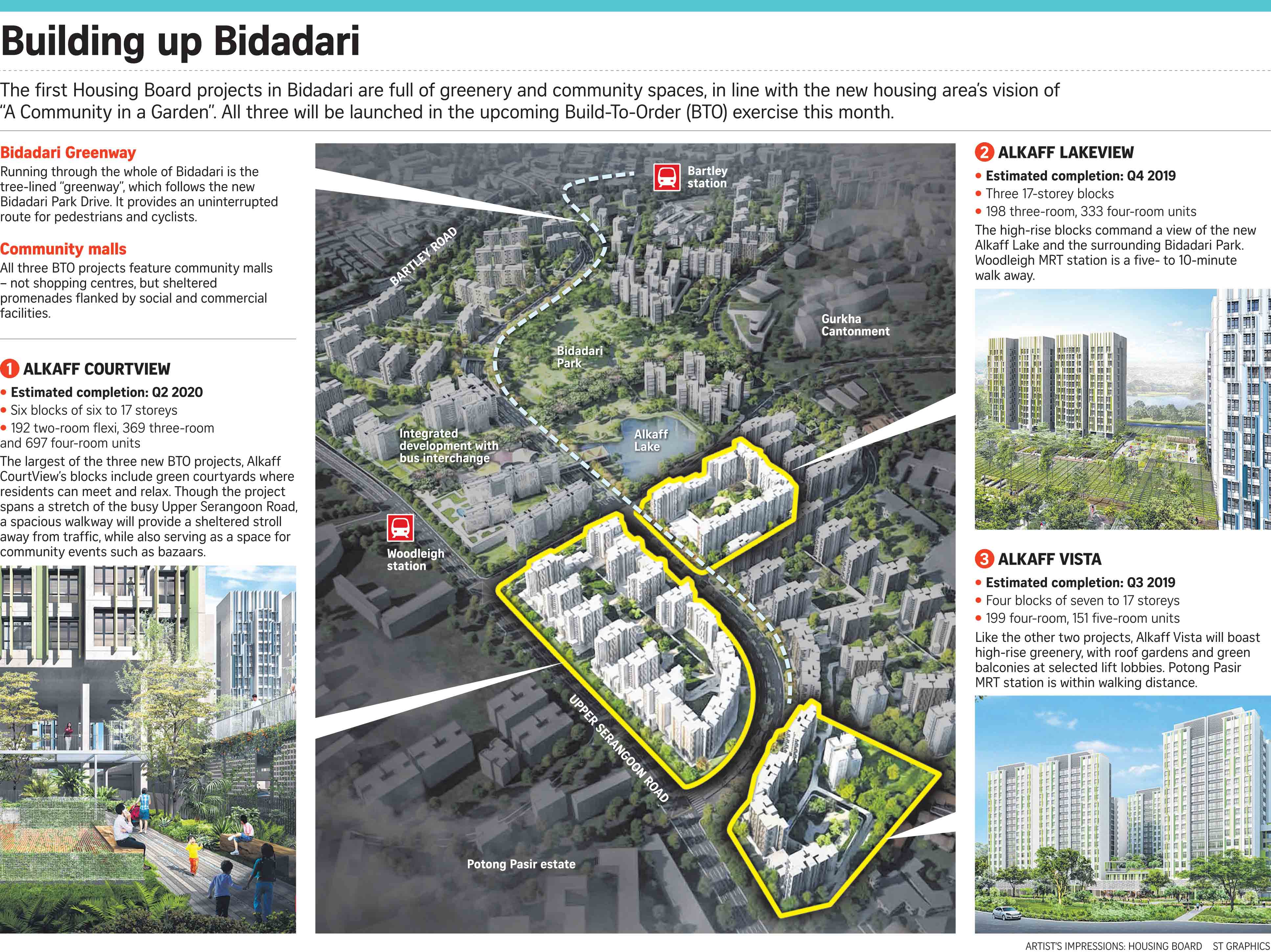 Spanning 93ha, roughly the size of 150 football fields, Bidadari estate is bounded by Bartley Road, Sennett Estate, Upper Serangoon Road and Mount Vernon Road. The area will be eventually carved up into four districts, of which the Alkaff district is the largest.