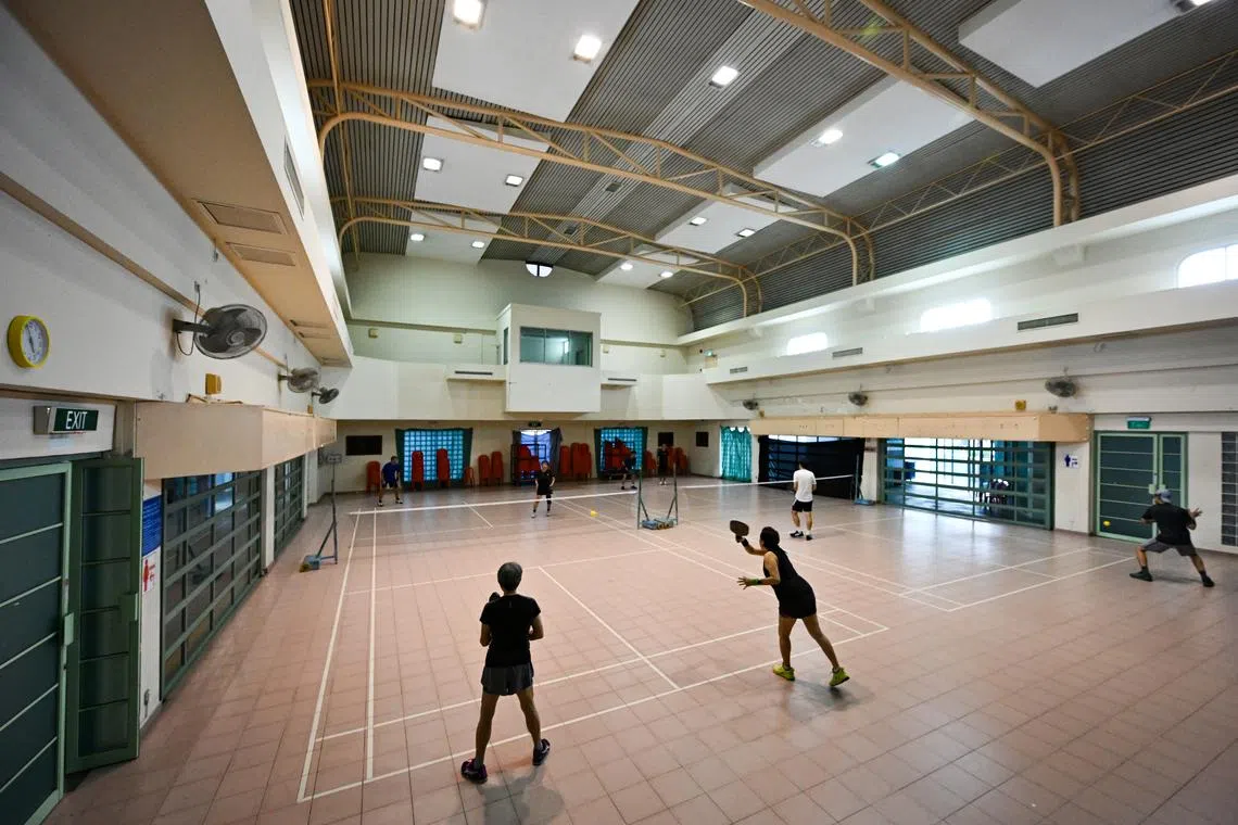 People playing badminton in the multi-purpose hall of Kampong Kembangan Community Club on Jan 19.