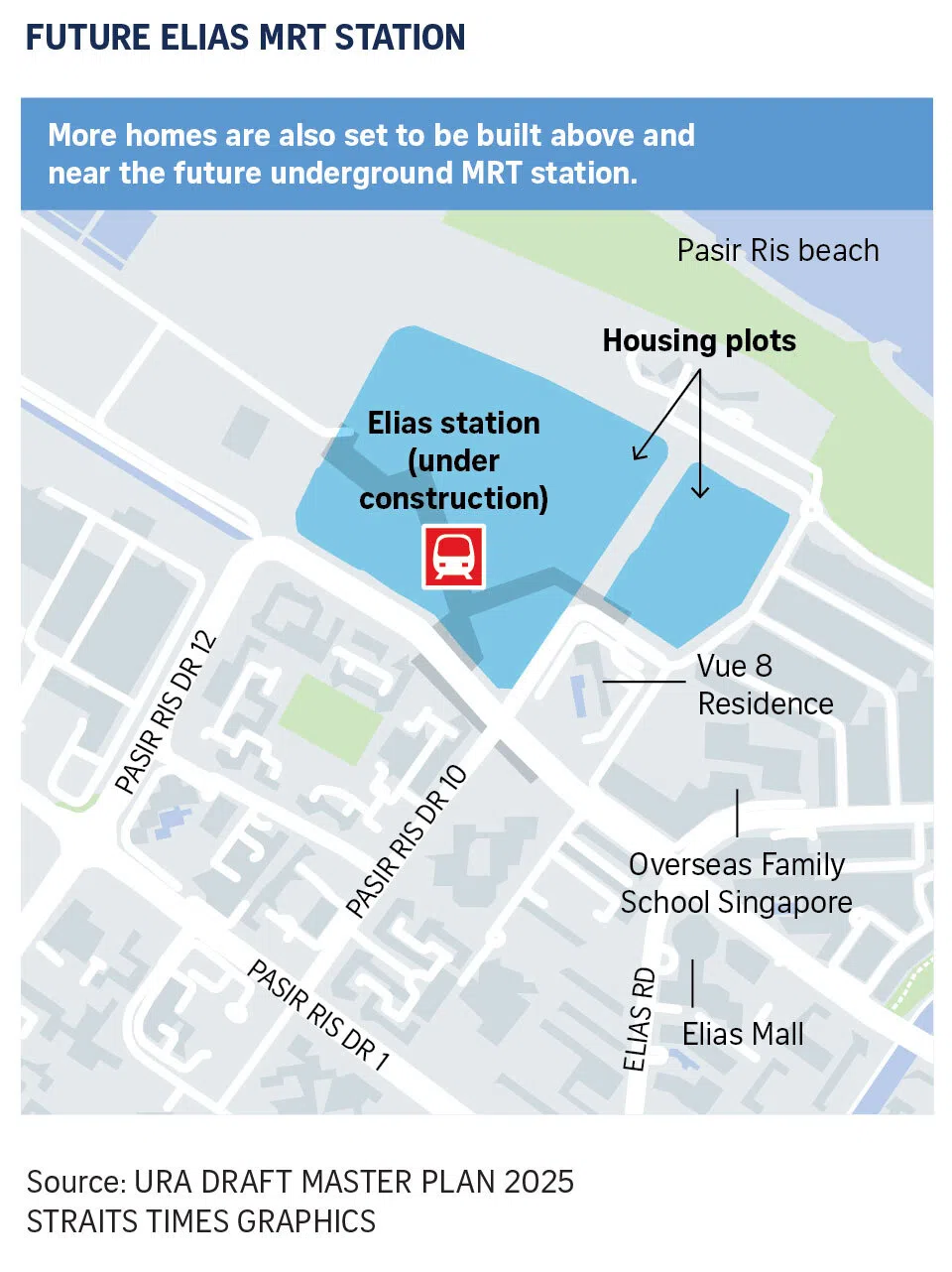 - A community hub is planned for Pasir Ris town centre, while new housing plots near Elias MRT station are designated, potentially adding thousands of homes.