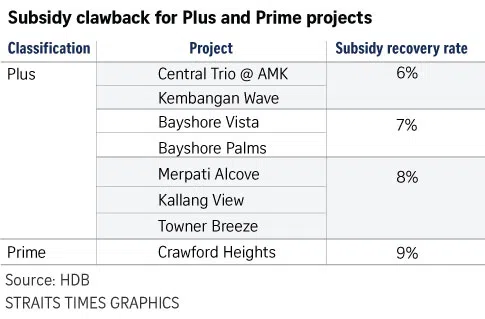 Mr Ismail Gafoor, chief executive of real estate firm PropNex Realty, said the subsidy recovery rates for Prime and Plus flats are relatively modest and may still be palatable to flat buyers.