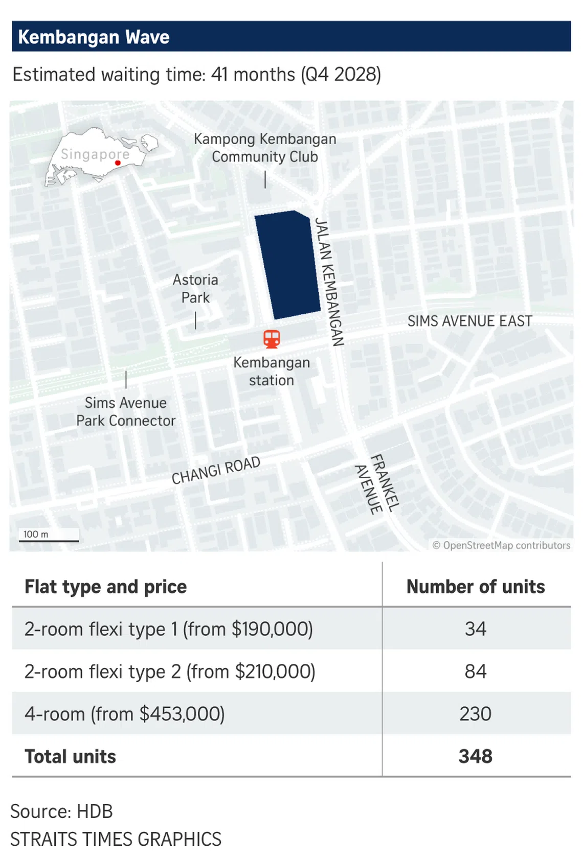 Meanwhile, four-room units in Kembangan Wave in the same estate are priced at $453,000 to $592,000, with the subsidy clawback set at 6 per cent.