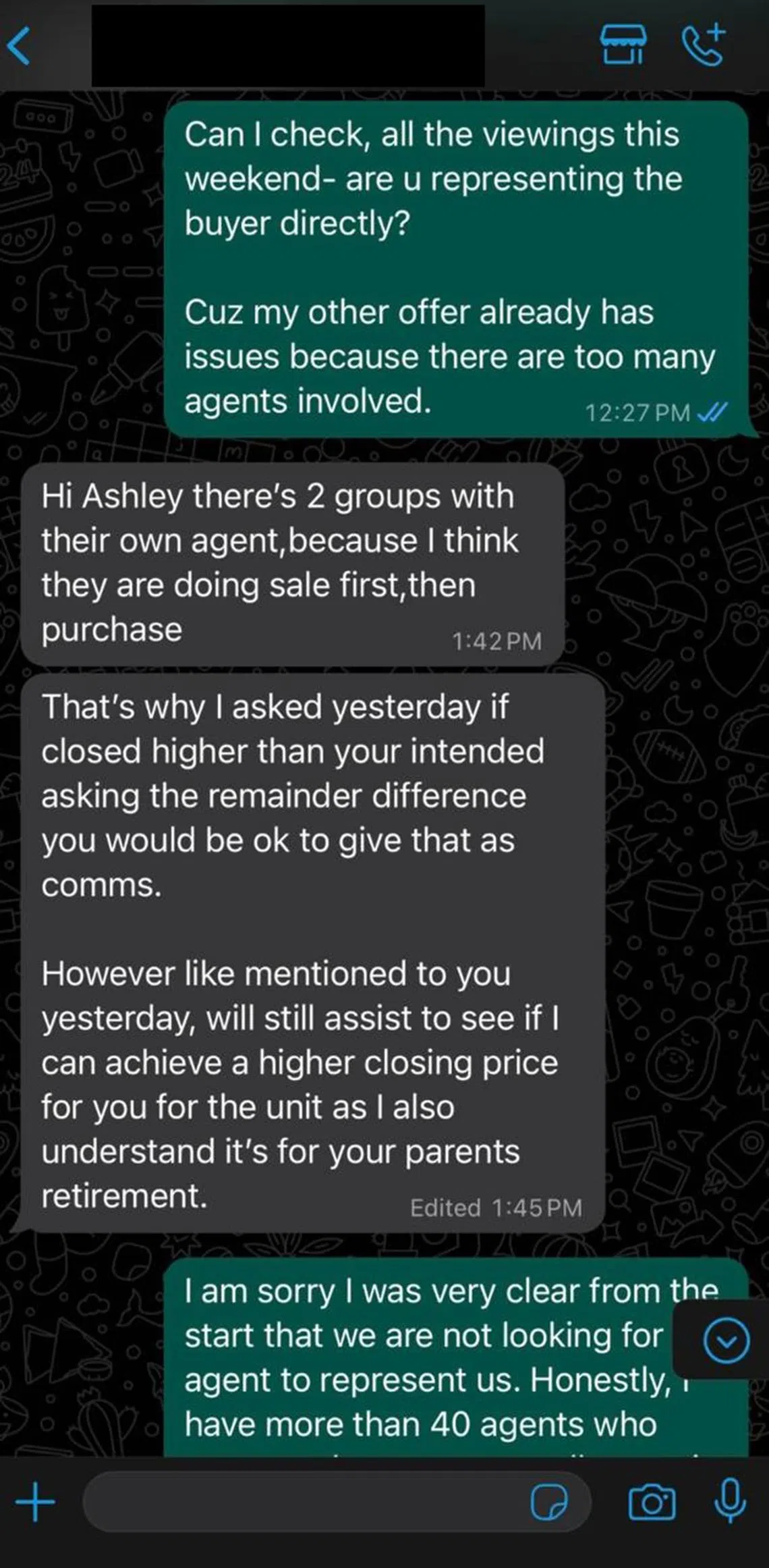 “It’s frustrating because we were in the process of negotiating the selling price with the buyer, and I thought we were about to close the deal,” she said, adding that she had initially agreed to the agent’s request because she thought it would be a “win-win situation”.