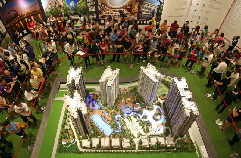 Buyers and their agents queueing to book a unit at High Park Residences, a 1,390-unit condo development in Fernvale, in 2015.