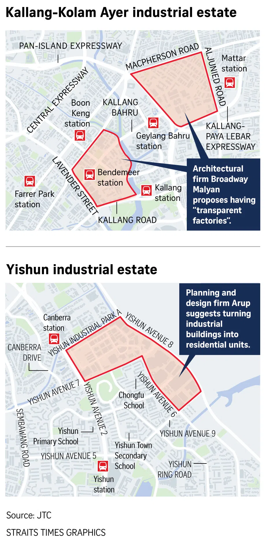 In a separate proposal, architectural firm Broadway Malyan mooted the idea of introducing “transparent factories” to the Kallang-Kolam Ayer industrial estate.