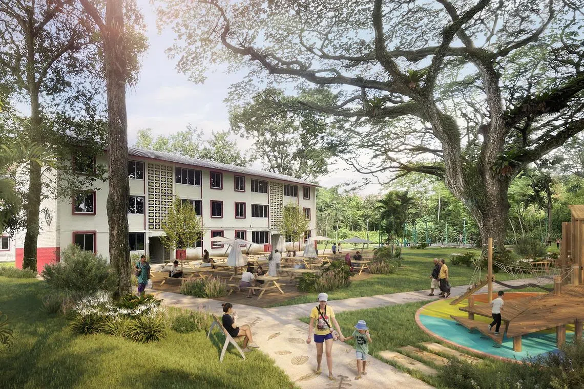An artist’s impression of a proposed park and retained Singapore Improvement Trust blocks as a new community space.