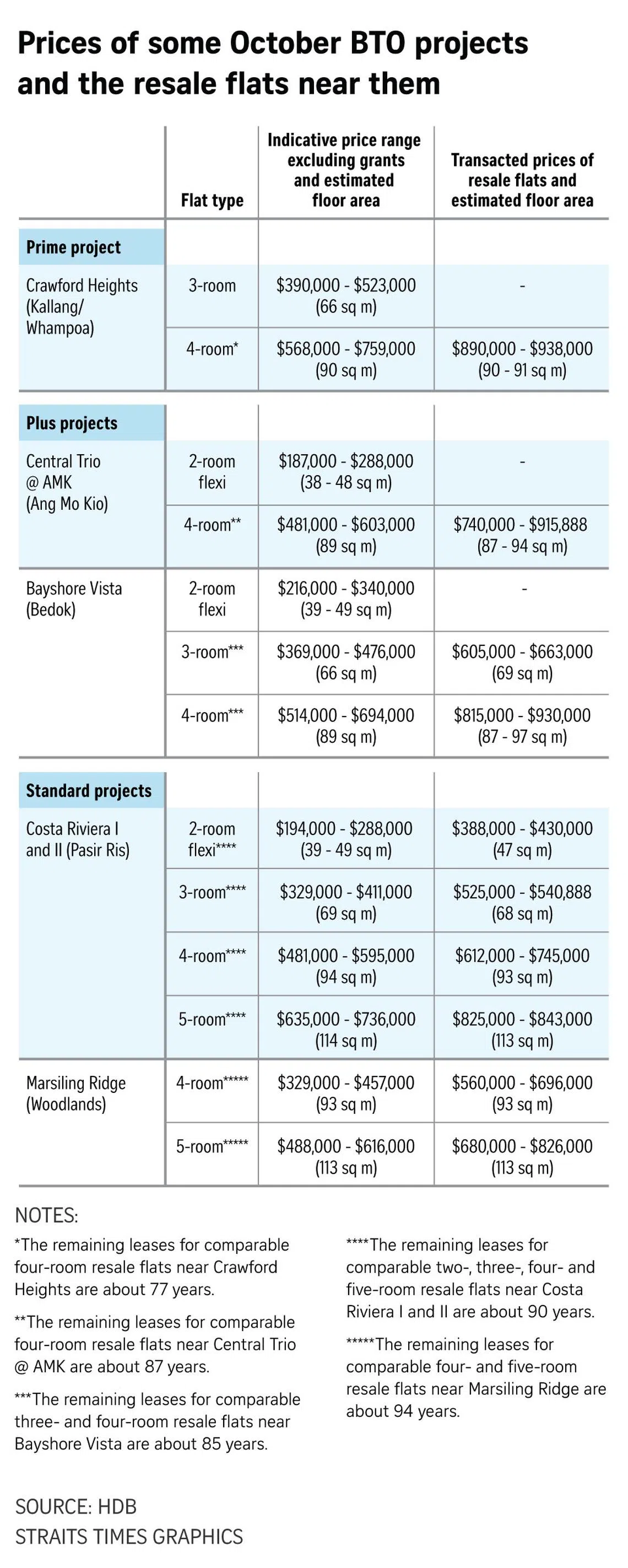 Standard flats may have one or two good attributes, such as being close to an MRT station or amenities. They will come with a five-year MOP.