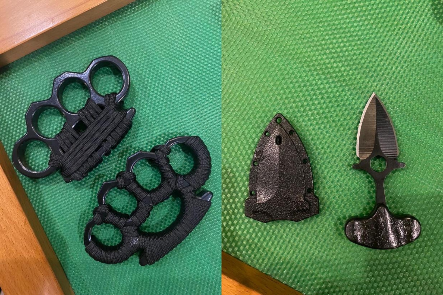 At the third suspect's home, HSA officers found two knuckledusters and a push dagger. The items were seized and police are investigating the 24-year-old suspect for possessing the scheduled weapons.