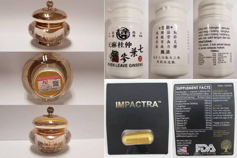 It said on Monday (Feb 10) that two of these products, Tian Ma Tu Chung Seven Leave Ginseng and Perliere Mimi Pearl Cream, have caused consumers to develop adverse reactions, while the third product, Impactra, contained dangerously high levels of a potent medicine used to treat erectile dysfunction.