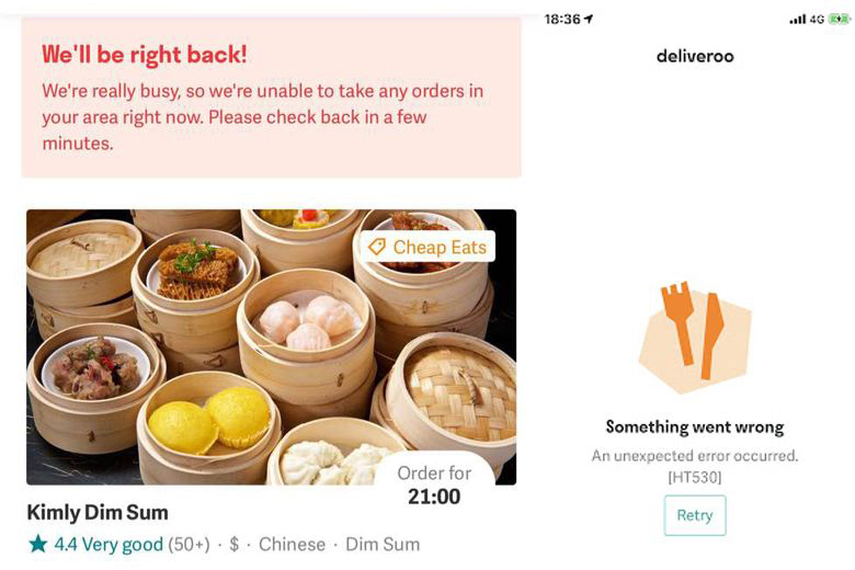 She had to rush home and buy dinner instead. "The Deliveroo app was down and lines were busy," Ms Foo added.