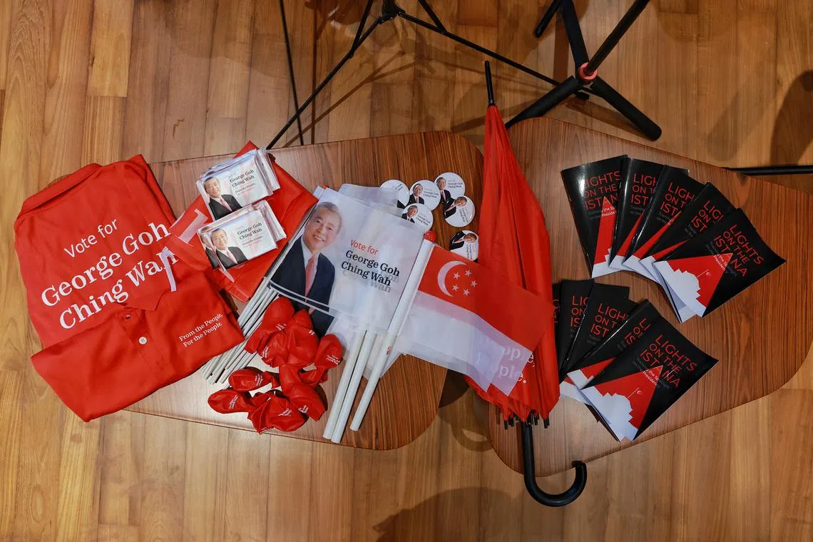 At his home, Mr Goh showed some campaign collaterals he had already prepared, including T-shirts, badges and flags. He had also ordered some 1.4 million mailers and a container full of tissue packets.