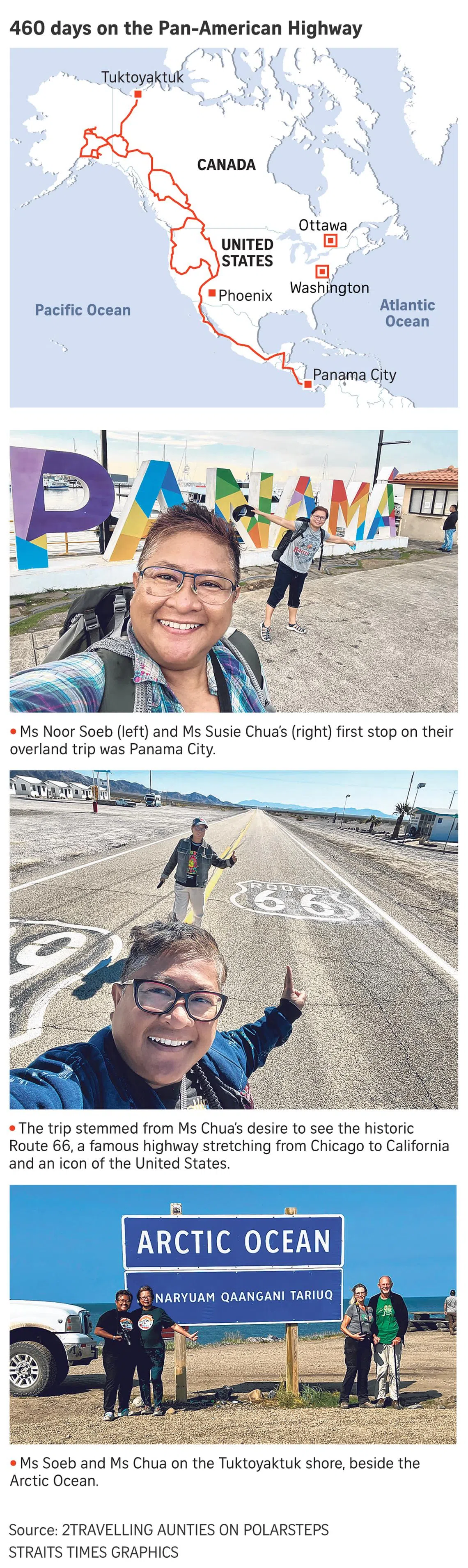 This is just one of the many stories Ms Noor Soeb, 54, and Ms Susie Chua, 59, have collected over their roughly 460-day overlanding trip through the Americas on the Pan-American Highway.