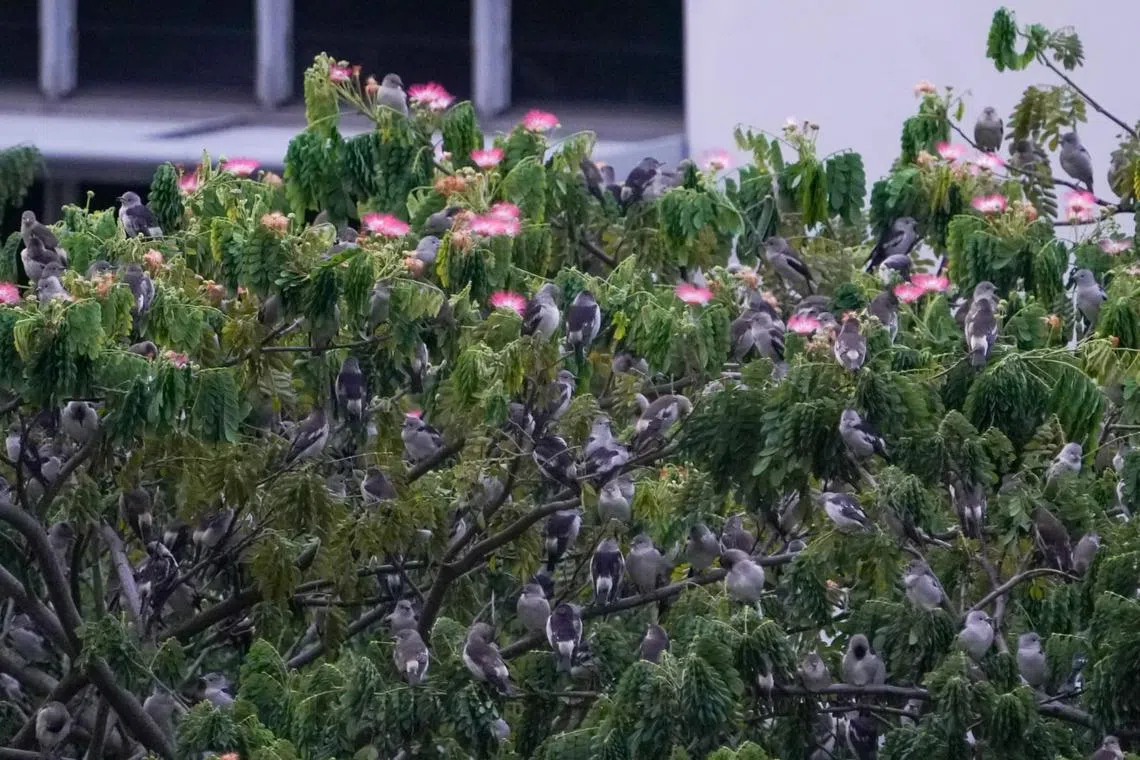 The daurian starlings were seen flying in huge flocks in formations for about 15 minutes at dusk before perching themselves on trees and calling it a day.