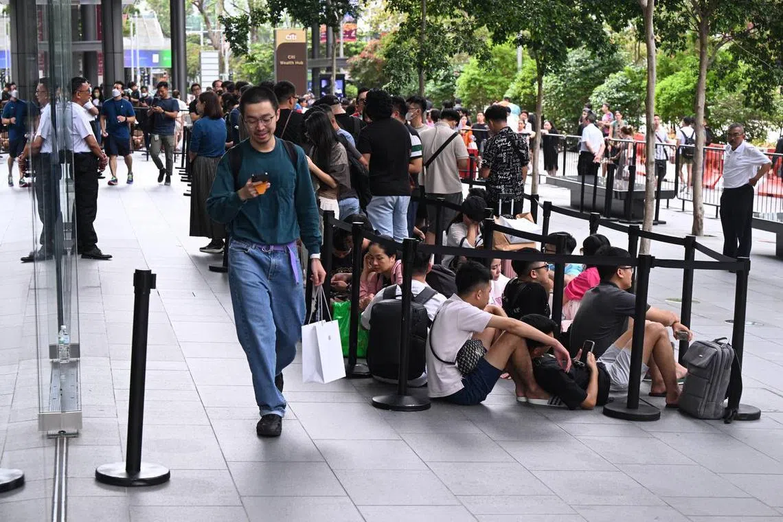 Singtel Singapore’s head of channel sales and operations Jensen Tan said the company had deployed 25 per cent more manpower to help with the launch on Friday morning.