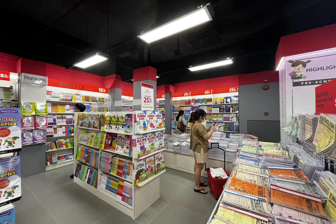 Madam Tim and Lok Yan usually head to the Popular bookstore at Toa Payoh HDB Hub to buy pens and notebooks.