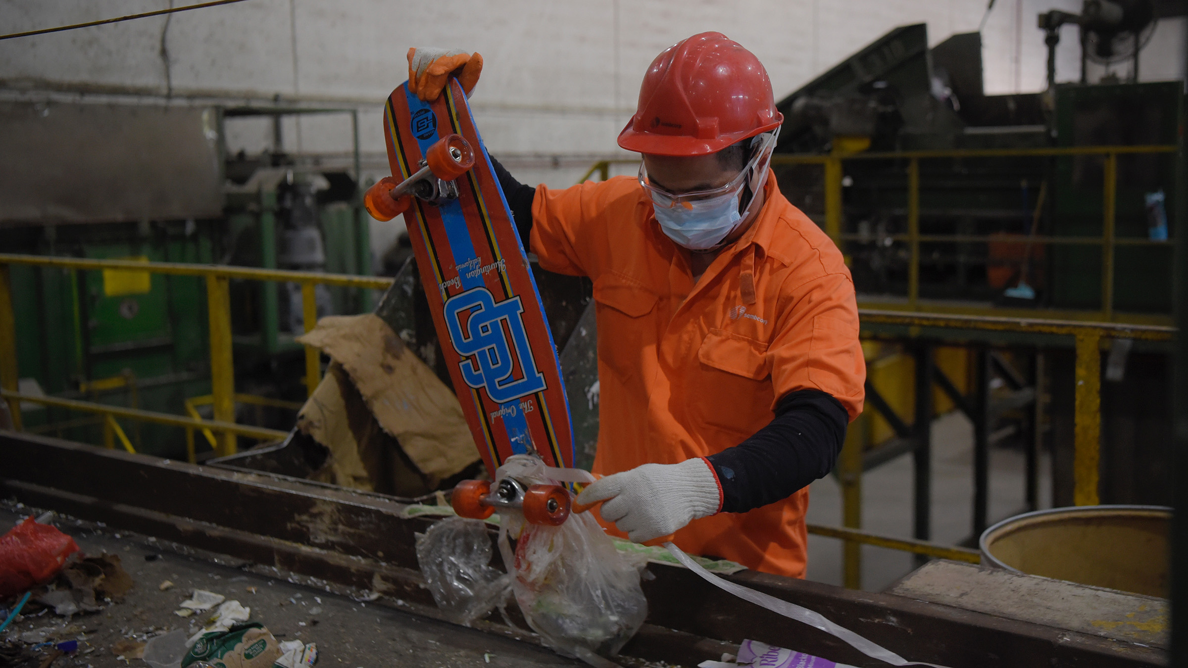 At SembWaste’s Materials Recovery Facility in Tuas, sorters have to manually go through packs of half-eaten food, soft toys and soiled surgical masks to pick out items that can be recycled. PHOTO: ST FILE