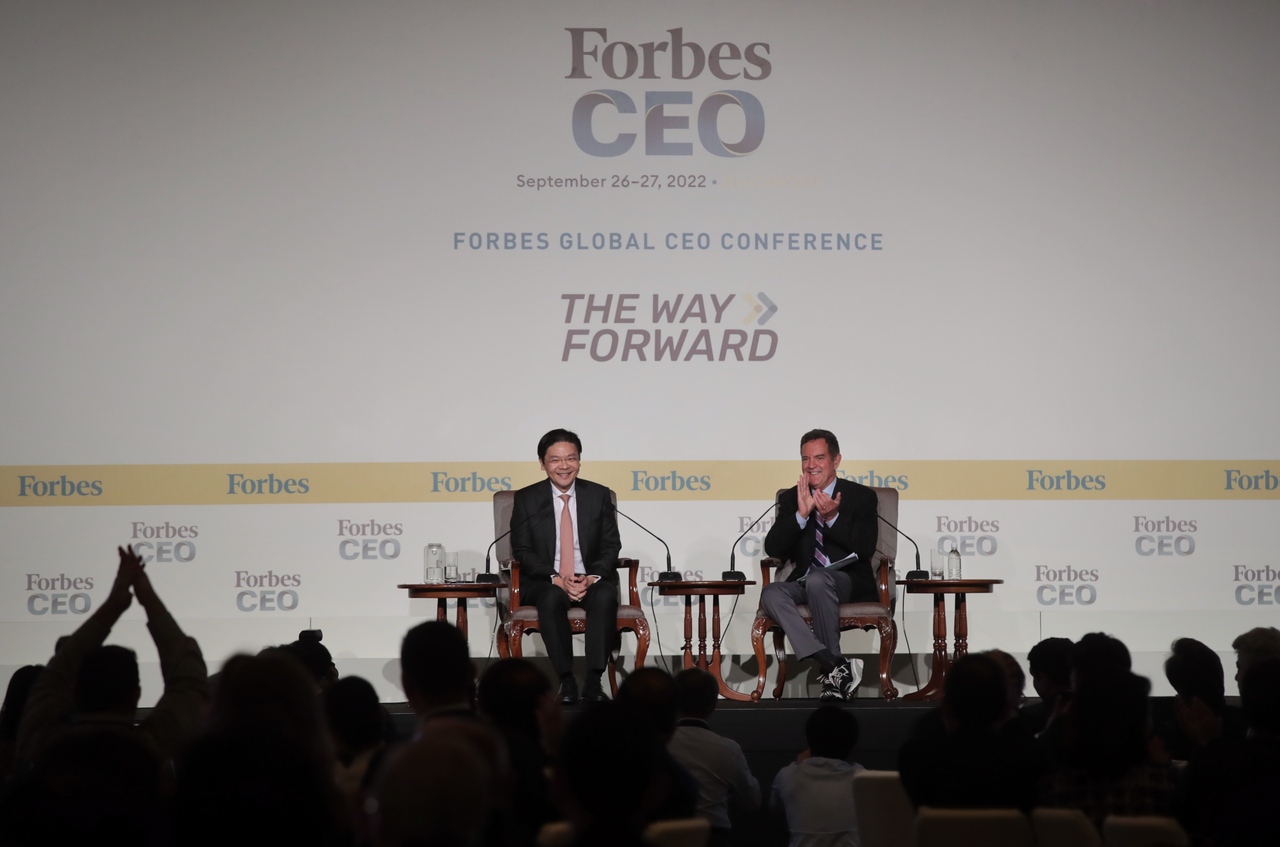 He was speaking at an hour-long dialogue moderated by Mr Rich Karlgaard, editor-at-large at Forbes Media, during the Forbes Global CEO Conference at The Ritz-Carlton, Millenia Singapore hotel.