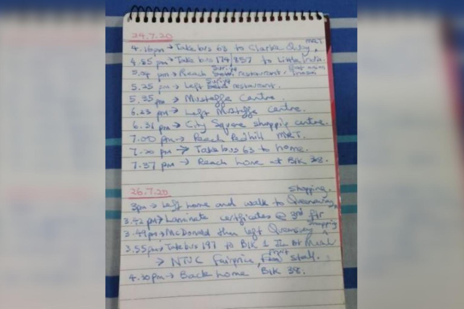 Most Singaporeans use SafeEntry to check in and out of places for contact tracing, but Mr Selvan Nazeer takes it one step further. The 57-year-old diligently jots down the specific times he enters and leaves a place, including when he takes public transport.