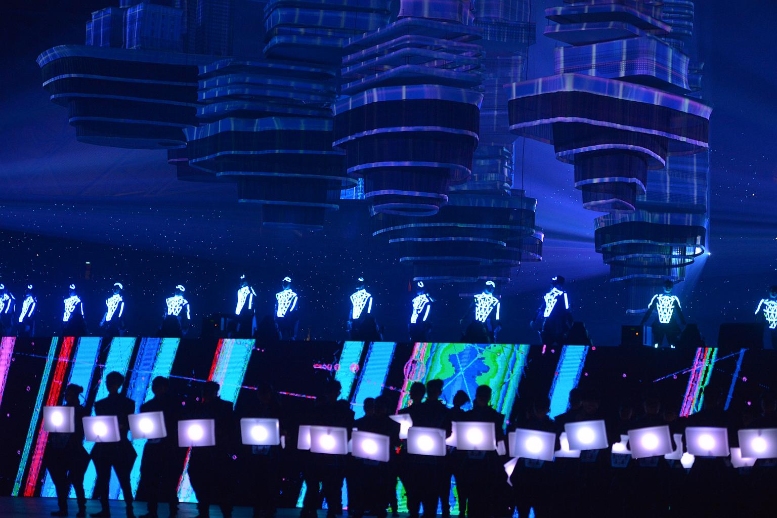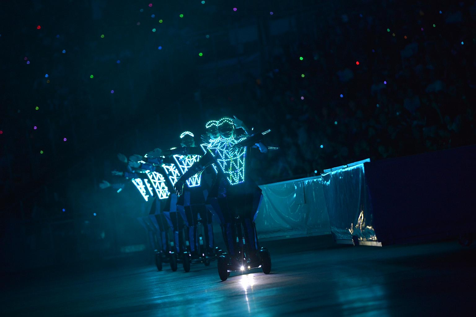 Performers dressed in LED costumes during Act 4, Ingenuity.