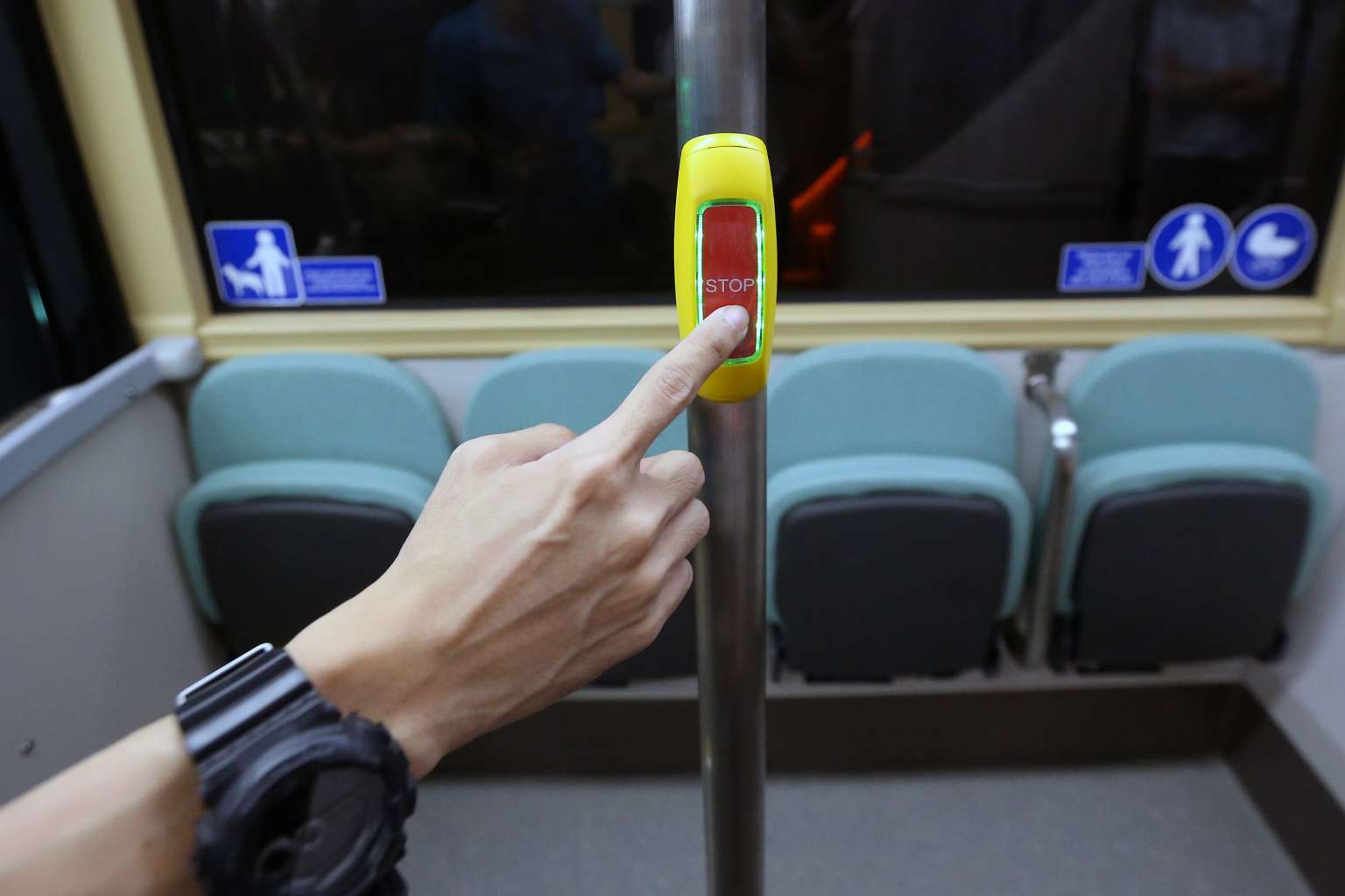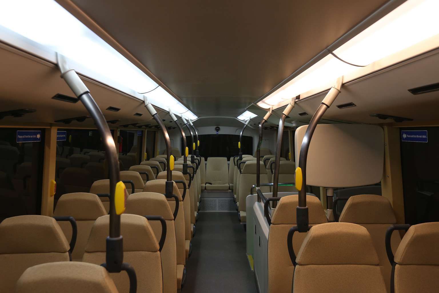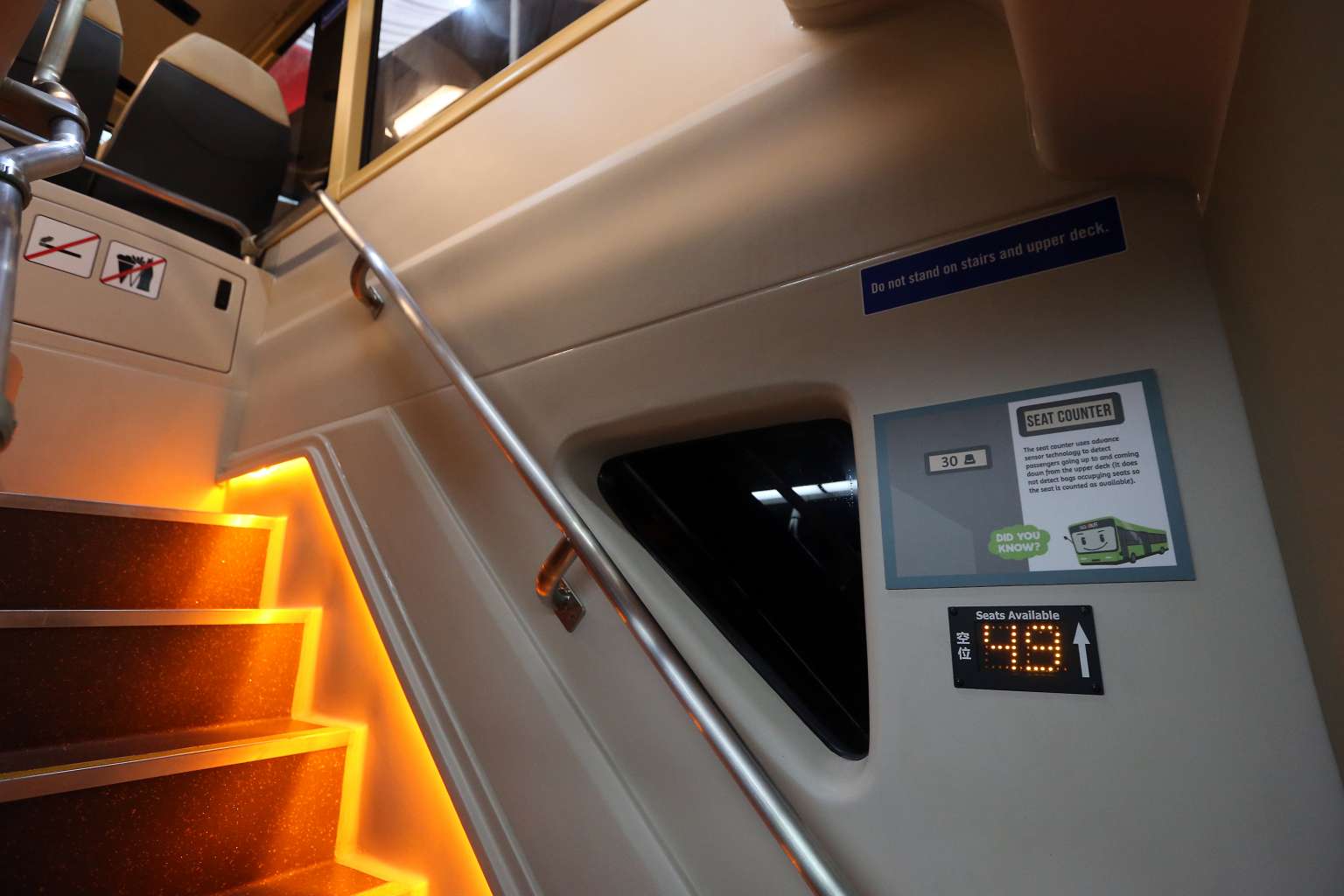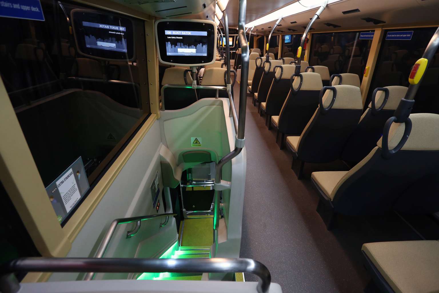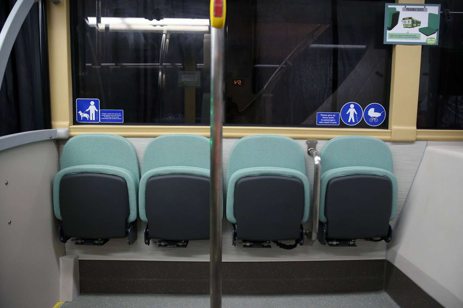 Priority seats onboard Bus A, one of the new concept double-decker buses.