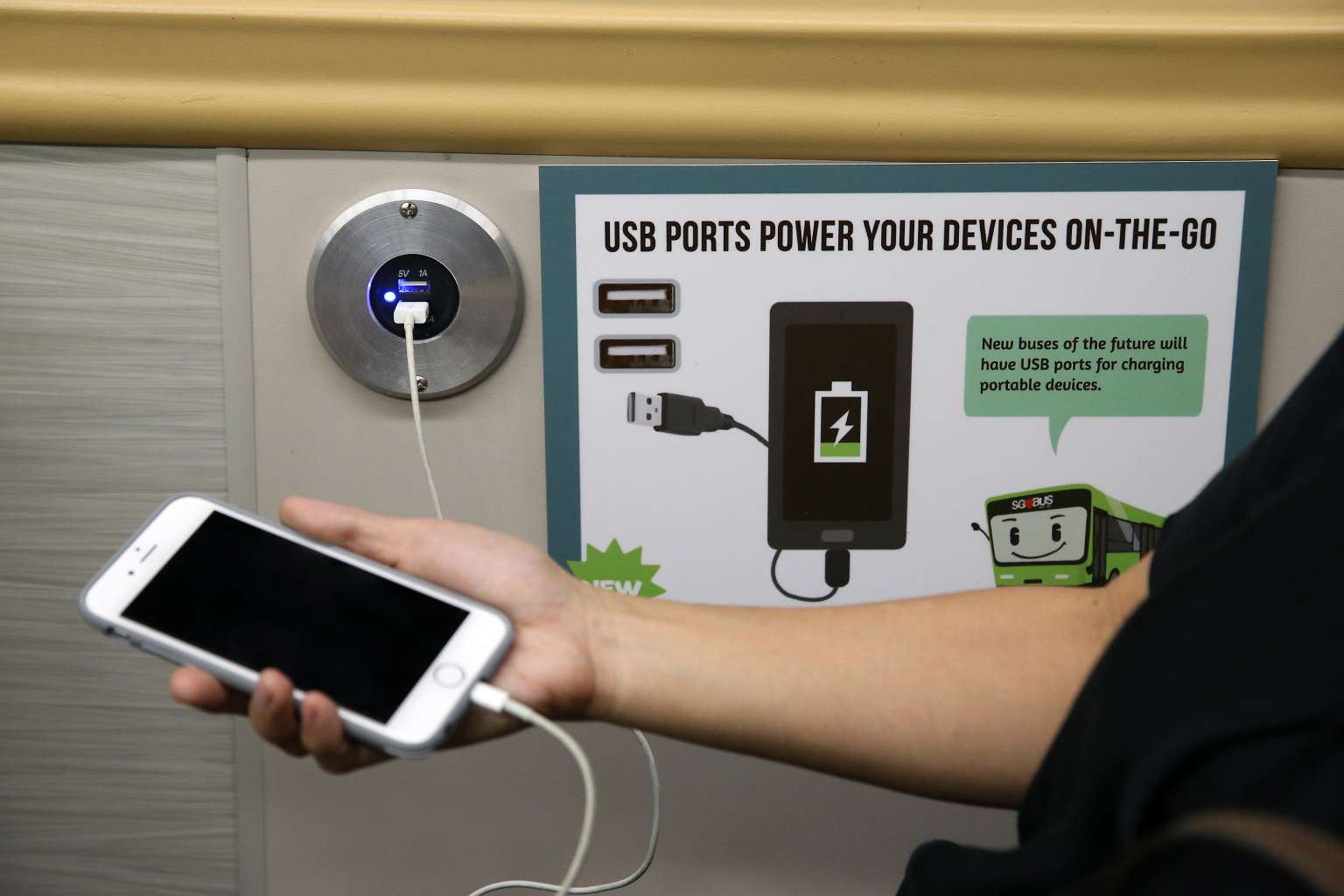 USB charging ports on Bus B, one the concept double-decker buses.