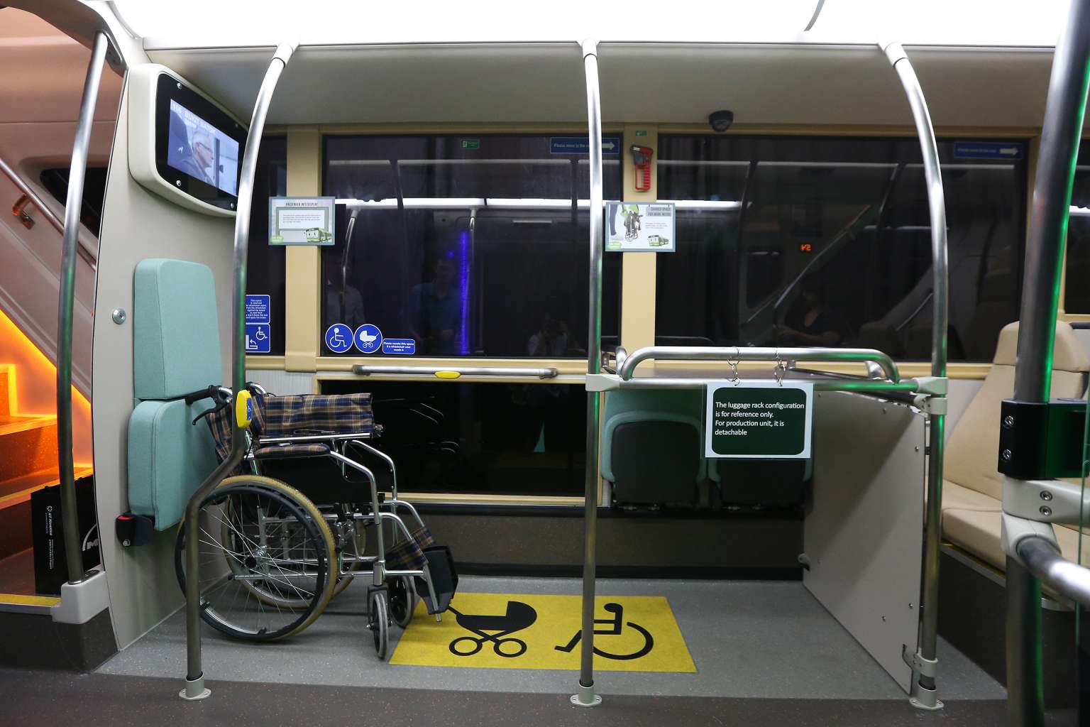 A designated area for prams and wheelchairs onboard Bus B, one of the concept double-decker buses.
