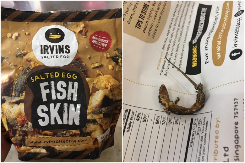In a Facebook post on Dec 29 last year, Ms Jane Holloway, 38, said that her mother and brother had eaten half the bag of Irvins Salted Egg Fish Skin before they discovered the dead reptile.